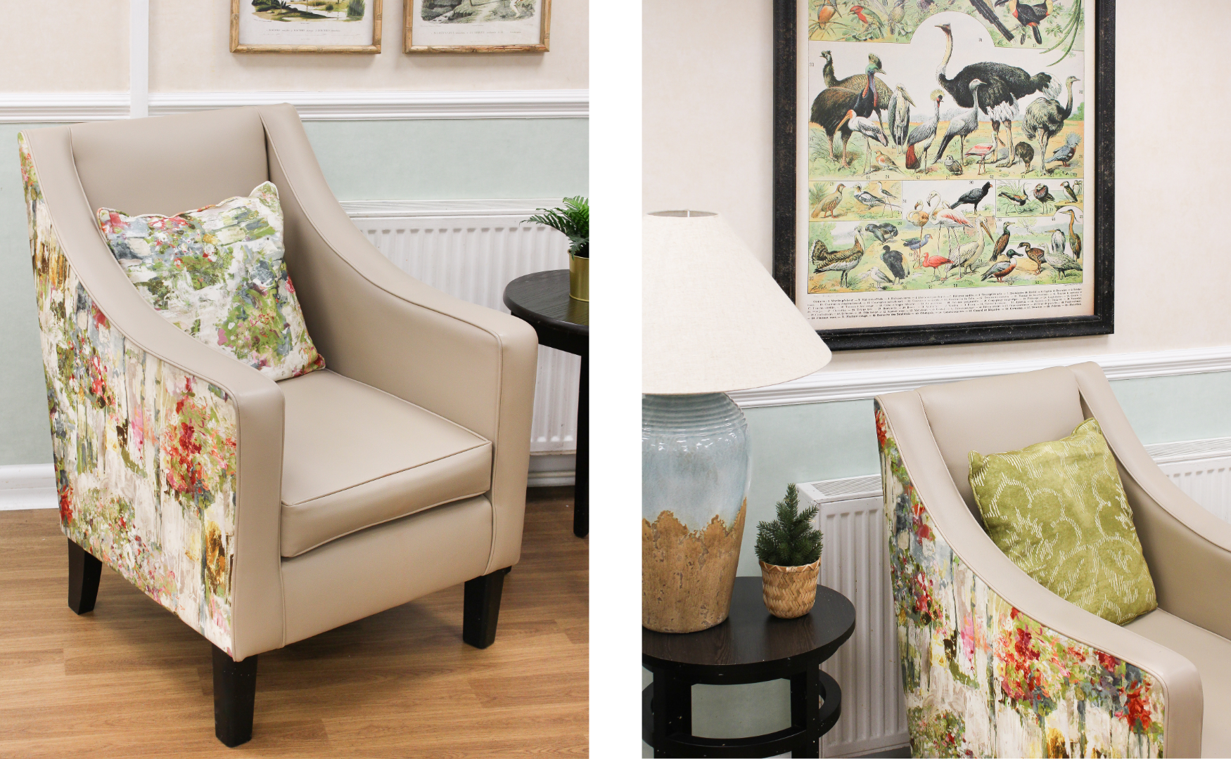 Westwood Court were looking to revamp their Lounge Space, and we did just that! With a focus on tieing all of the existing colours together, our design team picked out an abstract fabric to match a range of different tones dotted throughout the room. The chosen accessories piece the room together perfectly, providing that finishing touch!